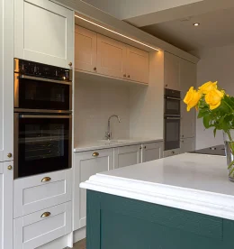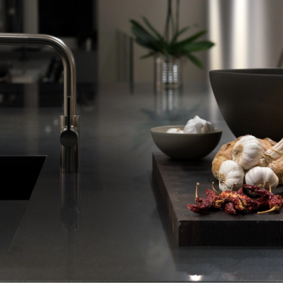 All quartz surfaces are manufactured from between 92% and 97% quartz crystals (one of the hardest natural minerals) combined with other materials and resins to form a tough, durable surface. Its non-porous properties also ensure it leaves no space for bacteria to collect and that it remains stain resistant. Similar to granite, a quartz worktop is very durable and great for use in the kitchen. Quartz surfaces offer a stylish finish that comes available in a large variety of colours, patterns and graining.